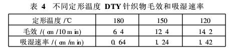 將不同定形溫度的DTY針織物進(jìn)行毛效對比測定,如表4。
