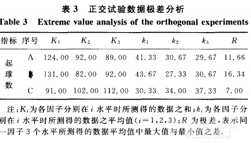 由表3和4可以看出,因素B對織物起球數(shù)的影響較為顯著,B2優(yōu)于B1和B3,B3優(yōu)于B1,這表明整理劑用量(o.w.f)是抗起毛起球整理中最主要的影響因素,但整理劑并不是用得越多越好;因素A也存在一定的影響,在顯著水平較大時,略微顯著;因素C不顯著,說明整理時間對抗起毛起球整理效果的影響不是很明顯,所以因素主次順序?yàn)锽>A>C.其中,A2和A3相差不大,C1,C2和C3的差別也較小,從節(jié)省時間資源成本角度考慮,可選擇A2,C1.綜合這3個因素,選擇最佳工藝參數(shù)為A2B2C1,即整理溫度為40℃,整理劑用量(O.w.f)為4,整理時間為20min.按照此_丁藝參數(shù)對納米抗菌針織物進(jìn)行整理,并參照起毛起球評級標(biāo)準(zhǔn)進(jìn)行評級,試驗(yàn)結(jié)果如表5所示.