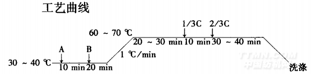 注:A、B、C分別為活性染料、元明粉和純堿。
