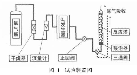 儀器 CF-98-10臭氧發(fā)生器(江蘇省海門市康達臭氧凈環(huán)保設備廠,設備參數(shù):電源電壓220V,臭氧產(chǎn)量10 g/h,臭氧濃度50 mg/h,氧氣輸入量160 L/h,氧氣輸入壓0. 05~0. 10 mPa,功率150W),氧氣瓶及減壓閥(成都拓展氣體公司),臭氧反應器(吸收瓶、冷凝管改制),GDYS-20恒溫消解器(長春吉大小天鵝儀器有限公司),PHS-25 pH測試計(上海精科雷磁公司),723分光光度計(上海精密科學儀器公司), 7502型紅外快速干燥器(江蘇電器二廠)等。