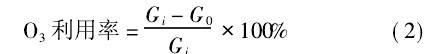 以通入反應液的臭氧量及尾氣吸收的臭氧量,按式(2)計算O3利用率/%:
