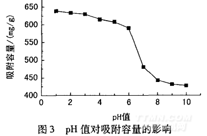 2.2.1 染液pH值對吸附容量的影響
