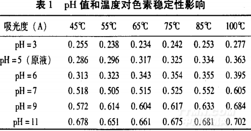 表l為pH值和溫度對色素穩(wěn)定性影響。