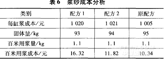 用配方1配制的漿液上漿率高,在織造過程中開 口清晰,經緯紗斷頭率均有所下降,減輕了工人的勞動 強度,提高了織造效率,明顯地提高布面質量和產品檔 次,取得了較好的經濟效益。