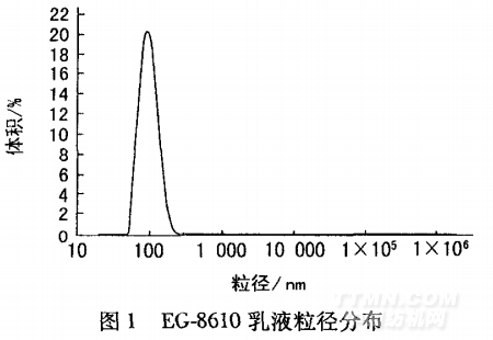 采用激光粒度儀測(cè)定EzGard EG一8610乳液粒徑分布,結(jié)果如圖1所示。