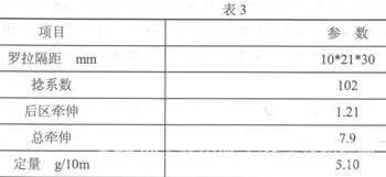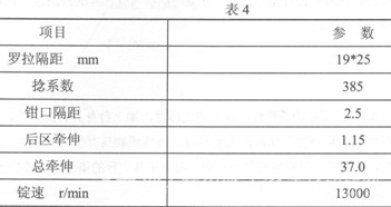 (7)增加搖架壓力和適當降低羅拉轉速。主要工藝參數(shù)見表4。