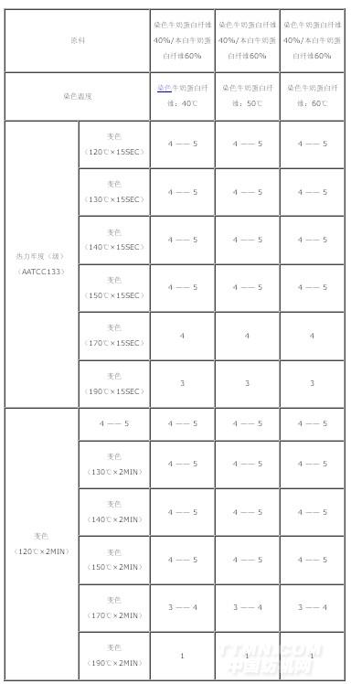 本試驗應(yīng)用純牛奶蛋白纖維,其中40%為染色牛奶蛋白纖維和60%本白牛奶蛋白纖維,紡制30s紗線,進行耐熱試驗。
