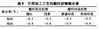 5.4 醋纖織物的尺寸穩(wěn)定性良好,后整理以改善手感、降低靜電聚集現(xiàn)象為主要目的。