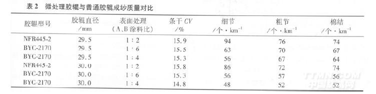 (9)對(duì)不同型號(hào)搖架加壓機(jī)臺(tái),依據(jù)品種紗號(hào),配置不同直徑的微處理膠輥,以較好發(fā)揮微處理膠輥的特性。