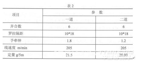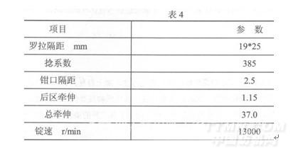 (7)增加搖架壓力和適當(dāng)降低羅拉轉(zhuǎn)速。主要工藝參數(shù)見(jiàn)表4。