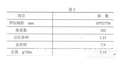 上機(jī)使用的膠圈要預(yù)先進(jìn)行酸處理,膠輥要用紫外線照射,以提高抗纏繞能力,主要工藝參數(shù)見(jiàn)表3。