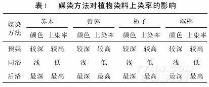 由表1可見,采用后媒染色法效果最好,得色最深,上染率最高,故本研究采用后媒染色法.
