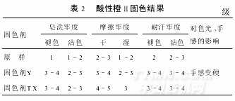 2.3.2酸性染料染純羊毛織物固色處理結(jié)果(表2)