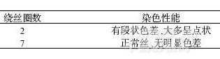 繞絲圈數(shù)染色性能2有段狀色差,大多呈點(diǎn)狀7正常絲,無(wú)明顯色差