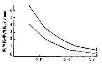 GR2速度的提高有利于成品絲的染色均勻性的提高,見圖2。由圖2可知,在一定拉伸速度下,拉伸倍數(shù)降低,襪帶上深色段長度增加,這是因為隨著拉伸倍數(shù)降低,纖維所受拉伸應(yīng)力減小,使未充分拉伸段變長。同時,在相同拉伸倍數(shù)下,隨著拉伸速度減小深色段變長。