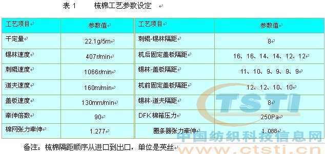 我公司選用特呂TC5-1梳棉機(jī),將錫林抬高,梳理區(qū)域加長(前后固定蓋板總長2.82米),前固定蓋板8根,后固定蓋板12根,使纖維梳理更充分,纖維的伸直平行度得到更大的提高,生條棉網(wǎng)棉結(jié)含量少,控制在2粒/克以內(nèi),成紗棉結(jié)、小粗節(jié)紗疵數(shù)量較少,生產(chǎn)效率高。