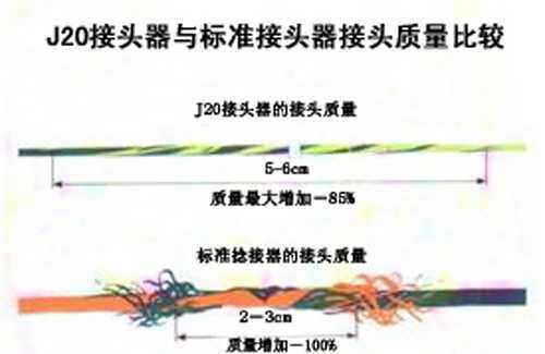 圖7 J20噴氣紡紗機的無接頭痕的接頭技術與一般接頭技術的接頭外觀比較圖