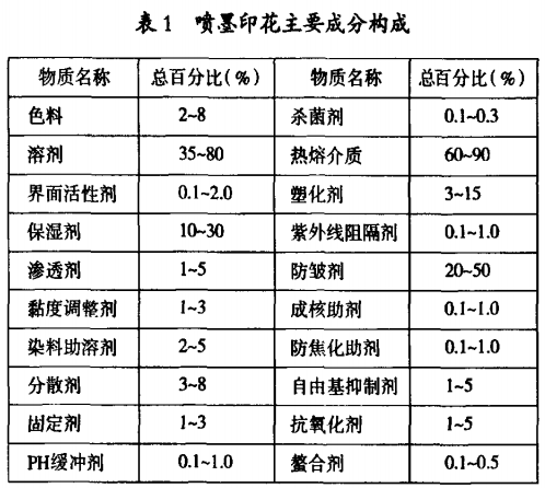 噴墨印花不僅要求高精度的噴嘴技術(shù)、高精密的控制技術(shù),同時,要求具有高純度、高濃度、高牢度、高穩(wěn)定性的墨水(油墨〉與之匹配,才有使用價值。用于高速數(shù)碼噴墨印花的油墨配方要求性能均衡,確保油墨應(yīng)用前穩(wěn)定性最佳,使高速噴射無障礙運行。當(dāng)油墨撞擊到織物表面時,油墨微滴應(yīng)該具有滿意的潤濕丨吸收特性。這可在織物的印前預(yù)處理中進(jìn)行控制。高速數(shù)碼噴墨印花油墨的配制,與常規(guī)的傳統(tǒng)染色和印花的染料或涂料的配制不同,即使采用相同的染料,它們的配制也不相同(見表1〉。