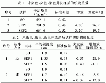 染色試樣的織物厚度提高38%,洗滌試樣的織物厚度提高48%。