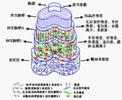 質(zhì)、油蠟和蛋白質(zhì)等組成。初生胞壁緊連表皮層,處于次生胞壁和表皮層之間,主要是纖維素的網(wǎng)狀組織,也含有一定數(shù)量的油蠟和果膠質(zhì)等雜質(zhì)。胞腔位于棉纖維中心,含有蛋白質(zhì)、礦物鹽及一些色素等。顯然,棉纖維中的天然雜質(zhì)主要集中于初生胞壁和表皮層中。