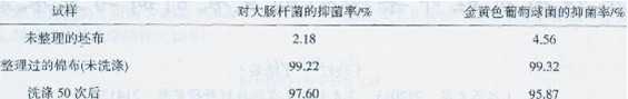 我們委托衛(wèi)生防疫部門(mén)檢測(cè)抗菌性.如表1數(shù)據(jù)所示,經(jīng)過(guò)整理的布樣對(duì)大腸桿菌、金黃色葡萄球菌的抑菌率分別達(dá)到99.22%和99.32%,當(dāng)織物洗滌50次后,對(duì)大腸桿菌、金黃色葡萄球菌的抑菌率仍能分別達(dá)到97.60%和95.87%.