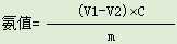 式中,m為試樣的質(zhì)量(g);C為標(biāo)準(zhǔn)鹽酸溶液的濃度(mol/L);V1、V2分別為試樣和空白試樣消耗鹽酸的體積(mL)。