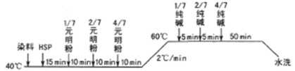 藥品活性紅BF-3B、活性黃BF-3R(上海雅運化工),活性藍(lán)GG(浙江龍盛化工),三合一精練劑HS-117E、穩(wěn)定劑HSP、無磷皂洗劑HS-634、堿性皂洗粉HSK-2(浙江華晟化學(xué)制品有限公司),皂洗劑A。