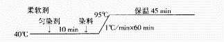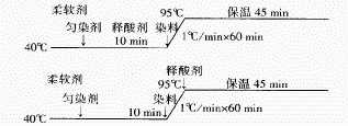 PAM勻染劑:1.5%,owf;浴中柔軟劑:1.09/L;釋酸劑:適量;染料:0.5%,o wf;浴比:1:30.