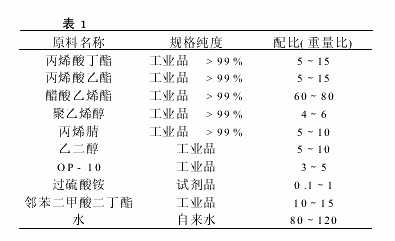 ①將計量的水、聚乙烯醇分別加入反應釜中,升溫至80~100℃攪拌,待聚乙烯醇完全溶解后,加入計量的乳化劑OP-10攪拌30~50min。