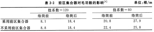 對于匯聚導(dǎo)紗器安裝在須條自然匯集點(diǎn)上方的情況,在絡(luò)筒前進(jìn)行測試,通常可觀察到成紗毛羽數(shù)有所減少,但成紗耐磨性和強(qiáng)度無變化,如表2—3所示。