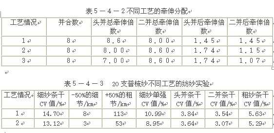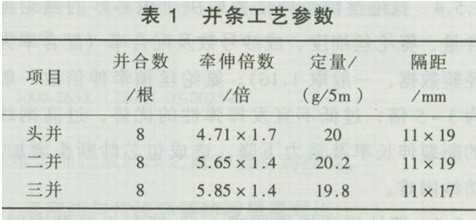采用二道并條時(shí),頭、二道并條機(jī)的牽伸分配有二種工藝:一種是倒?fàn)可旒搭^道牽伸倍數(shù)稍大于并和數(shù),二道牽伸倍數(shù)稍小于或等于并和數(shù)。這種牽伸型式由于頭道并條喂入的生條纖維紊亂,牽伸力較大,半熟條均勻度差,經(jīng)過(guò)二道并條機(jī)配以較小的牽伸倍數(shù),可以改善條干均勻度。但這種牽伸裝置由于喂入頭道并條機(jī)時(shí)前彎鉤纖維居多,較大的牽伸倍數(shù)不利于前彎鉤伸直。第二種工藝是順牽伸,即頭道并條機(jī)牽伸倍數(shù)小于并和數(shù),二道并條機(jī)牽伸倍數(shù)稍大于并和數(shù),形成頭道小,二道大的牽伸配置。這種配置有利于