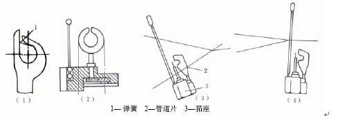 管道片噴氣引緯仍使用普通鋼筘(ordinary reed)進(jìn)行打緯,由許多管道片按一定的間隙扎制成的通道用于引導(dǎo)緯絲與氣流的通道。如圖2-18(3)所示,引緯時,管道片2隨筘座3運(yùn)動進(jìn)入梭口,引導(dǎo)緯絲與氣流。如圖2-18(4)所示,打緯時,管道片2隨筘座3運(yùn)動退出梭口。