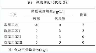 通過改變固色堿劑和燒堿的用量,確定合適的改進工藝。然后優(yōu)化代用堿劑用量,并研究不同代用堿劑用量和汽蒸時間對產(chǎn)品色光的影響,以及優(yōu)化狀態(tài)下產(chǎn)品的固色牢度。