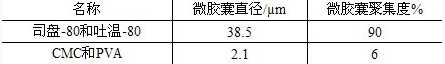 因為包埋液體石蠟的乳液最佳HLB值為10,實驗選用司盤-80、吐溫-80和CMC、PVA二組復(fù)合乳化劑,二組復(fù)合乳化劑對微膠囊性質(zhì)的影響實驗結(jié)果見表2。