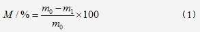 本試驗中用織物退漿前后的失重率來表征退漿效果。失重率按式(1)計算。