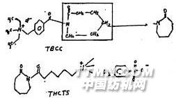 五、陽離子活化劑(TBCC/THCTS)的應(yīng)用及與NOBS的效果比較[14-15,18-21] 繼TAED及NOBS之后,又開發(fā)了季銨鹽類(陽離子型)過氧化物的活化劑品種,美國北加州大學(xué)紡織學(xué)院和土耳其伊斯坦堡大學(xué)的科研人員,對陽離子活化劑在雙氧水漂白液中的應(yīng)用效果進(jìn)行了系統(tǒng)試驗,并與NOBS作了對比,表明其效果更為優(yōu)秀。 以N-酰基已內(nèi)酰胺 (N-Acyl-caprolactam)類中,巳開發(fā)應(yīng)用的二只品種為:TBCC是,N[4(三乙基銨甲撐)苯?;鵠已內(nèi)酰胺氯化物 (N-[4-(Methylammonicomethyl)benzoyl]caprolactam chloride)的簡稱,THCTS是6-N,N,N三甲基銨甲撐)己?;簝?nèi)酰胺對甲苯磺酸 (6-N,N,N-trimethylammonio)hexanoyl aproleotamp-toluenesulfonate)的簡稱,它們的結(jié)構(gòu)分別如下式所示: