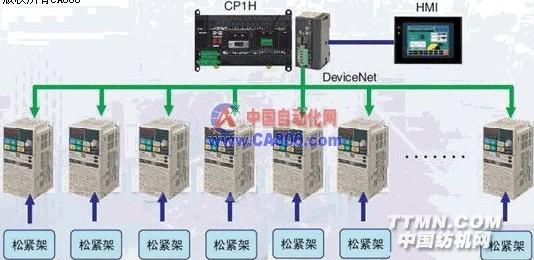 對退煮漂聯(lián)合機(jī)來說,聯(lián)合蒸房的效率、化學(xué)原料及環(huán)保問題、和熱回收利用問題是最受關(guān)注的。 退煮漂聯(lián)合機(jī)整機(jī)采用變頻器作為驅(qū)動(dòng)設(shè)備,傳動(dòng)點(diǎn)約為30~60個(gè);采用松緊架作為張力反饋,每個(gè)變頻器可進(jìn)行簡單張力控制,具體方式有變頻器自身調(diào)節(jié)或者采用同步控制器控制。退煮漂整機(jī)采用通訊控制方式,可設(shè)置多個(gè)基準(zhǔn)點(diǎn)分段運(yùn)行,實(shí)現(xiàn)運(yùn)行速度自適應(yīng)。 歐姆龍整體解決方案及其優(yōu)勢: 退煮漂聯(lián)合機(jī)控制系統(tǒng)采用了以歐姆龍CP1H為核心,以DeviceNet總線方式代替模擬量的方式來控制變頻器,按照張力一致的要求實(shí)現(xiàn)速度同步分配和實(shí)時(shí)控制,減少了現(xiàn)場走線,提高了控制精度,節(jié)約大量成本,為客戶帶來了實(shí)實(shí)在在的效益。