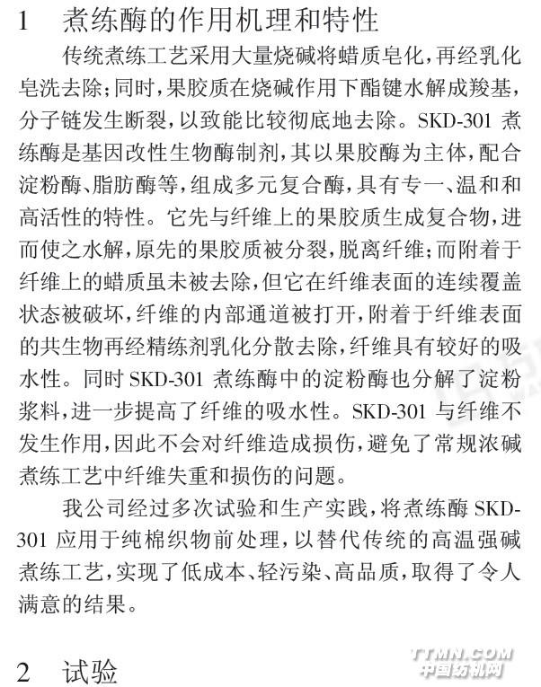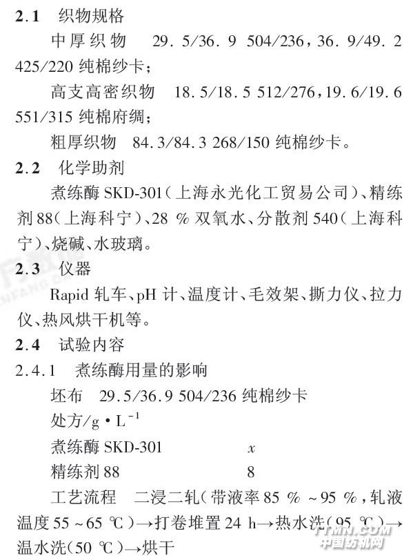 煮練酶在棉織物的前處理的作用