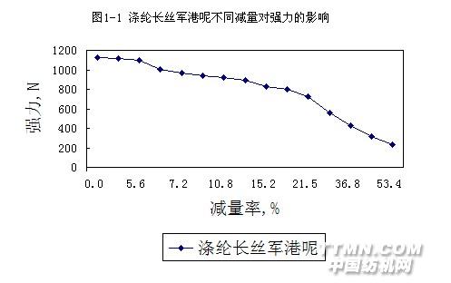 | 減量率,% | 強(qiáng)力,N | 強(qiáng)力下降,% | 減量率,% | 強(qiáng)力, N | 強(qiáng)力下降,% |