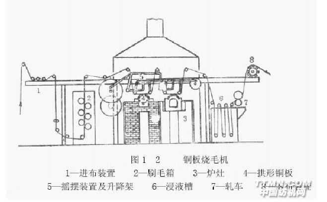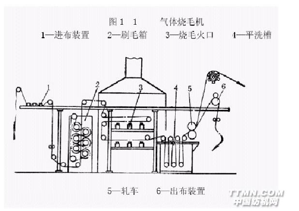 氣體燒毛機(jī)對(duì)各種紡織物都適用,對(duì)凹凸提花織物效果尤其好,燒毛質(zhì)量比較勻凈,火焰易控制。氣體燒毛機(jī)工作時(shí)對(duì)室溫影響較小,準(zhǔn)備工作時(shí)間短。熱板燒毛機(jī)需提前約1h點(diǎn)火,將金屬板或圓筒燒到紅熱,才能開始燒毛。銅與鑄鐵等金屬材料在紅熱條件下容易被空氣中的氧氣氧化,耗損較大。氣體燒毛機(jī)由進(jìn)布裝置、刷毛箱、燒毛火口、滅火裝置組成。氣體燒毛機(jī)的主要部件是燒毛火口,通常使用狹縫式火口,這種火口使用歷史較早,目前仍在使用。火口是一狹長的鑄鐵制小箱體,箱內(nèi)是可燃性氣體和空氣的混合室,小箱上部有一條狹縫,是可燃?xì)馀c空氣混合物的出口,稱為噴口,噴口寬度一般為0.5~0.8mm,與所用可燃性氣體的燃燒速度有關(guān),燃燒速度快的,噴口可狹些,反之,噴口要寬些。為了適應(yīng)織物布幅的寬窄變化,火口兩端可用壓板或高壓空氣或其他行之有效的方法調(diào)幅,使火焰噴射寬度適應(yīng)于燒毛織物寬度,以免浪費(fèi)可燃?xì)?。舊式燒毛機(jī)火口火焰溫度較低(一般700~800℃),常采用多火口燒毛的方法,以提高燒毛質(zhì)量。但經(jīng)長期實(shí)踐觀察,燒毛火口的火焰溫度對(duì)燒毛質(zhì)量有顯著影響,提高火焰溫度,不但可以燒毛凈,還可以提高車速?,F(xiàn)在改進(jìn)火口措施主要有下列幾種方法:①輻射式火口:在火口上加裝異形耐火磚,使混合氣出噴口后在耐火磚小腔內(nèi)燃燒,耐火磚是高溫載體,可以聚集熱量,提高燃燒溫度,強(qiáng)化燃燒過程(可達(dá)1300~1400℃)。②多維火口:如國產(chǎn)SPS-II型雙噴射火