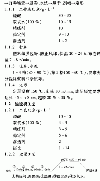 摘要:針織物活性染料印花對印坯的前處理要求較高,如煮練勻透,去堿凈,毛效高。介紹了三種前處理煮練工藝:冷軋堆、溢流機前處理和松式繩狀練漂聯(lián)合機前處理,可適用于不同批量和印花花型。針織物活性染料印花比涂料印花的前處理要求高。后者采用不溶性顏料藉粘合劑成膜而緊密地粘著在纖維上,對布面具有很強的遮蓋性;而前者則采用活性染料與纖維素纖維發(fā)生化學反應,以共價鍵結(jié)合在纖維上,若針織物前處理去油不凈,煮練不透、不勻和去堿不凈,印花時就會出現(xiàn)布面白斑、發(fā)花和不勻條子等問題?;钚匀玖厢樋椢镉』〞r,染料只有在蒸化的幾分鐘內(nèi)移染,并完成固色。因此,活性染料印花的前處理要求與涂料印花和浸染不盡相同,要求前處理煮練勻、透,毛效高,去堿凈。l 前處理工藝織物l8 tex(32 )汗布工藝流程縫頭一(燒毛一)煮練一漂白一(絲光一)定形燒毛目的是去除布面上的茸毛,使布面光潔美觀。若客戶要求布面帶有絨感,可不燒毛。煮練的目的是去除棉纖維中的果膠質(zhì)、蠟質(zhì)、灰分和棉籽殼等雜質(zhì),使織物獲得良好的外觀和吸水性。漂白的目的在于提高織物的白度。絲光的目的足提高織物對染料的吸收能力和尺寸穩(wěn)定陛,降低縮水率,并獲得耐久性光澤。我公司目前沒有針織絲光機,所以對煮漂過程采取了加強T藝,用MON—FONGS 38—.gif)