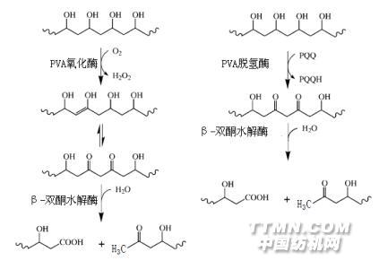 PVA須經(jīng)兩步酶催化反應(yīng)才能得以降解: