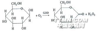 β-D-葡萄糖在葡萄糖氧化酶的催化作用下,生成葡萄糖酸內(nèi)酯和雙氧水,利用產(chǎn)物雙氧水對(duì)織物進(jìn)行漂白。
