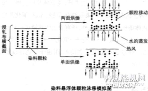 2.懸浮體軋染 隱色體染色法操作比較麻煩,初染率高,對于結(jié)構(gòu)緊密的機(jī)織物,易產(chǎn)生“白芯”現(xiàn)象。 為提高染料的適應(yīng)性,獲得較好的勻染性及透染性,機(jī)織物染色時(shí)常采用懸浮體軋染。懸浮體軋染法就是將還原染料的超細(xì)粉配成懸浮體溶液直接浸軋?jiān)诳椢锷希缓筌堖€原液,在汽蒸條件下使染料還原成隱色體,從而吸附、上染纖維的染色方法 工藝流程:浸軋染料懸浮液(→烘干) →浸軋還原液→汽蒸→水洗→氧化→皂煮→水洗→烘干該方法可以克服隱色體染色初染率高和移染性能差的缺點(diǎn),不會(huì)有“白芯” 懸浮體對纖維無親和力,均勻分布在織物毛細(xì)管內(nèi)部纖維與紗線表面,還原后隱色體被纖維吸附,并擴(kuò)散進(jìn)入纖維內(nèi)部,具有較好的勻染性和透染性 對染料適應(yīng)性強(qiáng),不受上染率限制,易拼色 產(chǎn)量高,質(zhì)量好要求染料顆粒的直徑小于2μm,并至少有80%以上在1μm以下。 顆粒越小,懸浮液穩(wěn)定度越高,對織物透染性好,還原速率快 顆粒太大,影響得色量,甚至造成