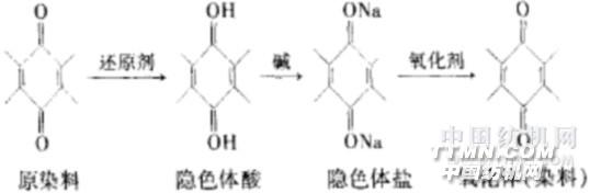 ,在堿性條件下還原,染料便成為可溶于水的、對纖維有親和力的隱色體鈉鹽,簡稱隱色體; (2)染著在纖維素纖維上的隱色體鈉鹽,再經(jīng)過氧化,便恢復(fù)成為不溶狀態(tài)的染料色淀而固著在纖維上其上染過程是氧化-還原過程