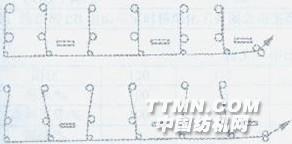 我國(guó)自上世紀(jì)70年代末開發(fā)牛仔布至今,已發(fā)展成擁有百條以上生產(chǎn)線,年生產(chǎn)能力達(dá)10億多m2的牛仔布重要生產(chǎn)國(guó)。但在牛仔布染色方面還存在著不少問題。我們從改進(jìn)經(jīng)軸的退繞方式,選擇合理的工藝配方,調(diào)整機(jī)械配置,加強(qiáng)管理來提高染色質(zhì)量,使色差疵布率由2.6%降到0.8%。1經(jīng)軸的退繞方式 選擇合理的經(jīng)軸退繞方式,目的是為了各經(jīng)軸之間的張力差異減到最低限度,有利于染色的順利進(jìn)行和產(chǎn)品質(zhì)量的提高。由于片狀漿染聯(lián)合機(jī)的工藝路線長(zhǎng),片紗在通過眾多的直徑較小的導(dǎo)輥時(shí),受交變應(yīng)力的作用,容易引起紗線的伸長(zhǎng)和松弛。如果各經(jīng)軸之間紗片張力不勻,運(yùn)轉(zhuǎn)中會(huì)造成部分紗線游移重疊,導(dǎo)致斷頭而停車,使色差增多。我們經(jīng)過反復(fù)實(shí)踐,在確保各軸之間退繞張力一致的情況下,采用較小的張力,這有利于保護(hù)紗線的彈性。經(jīng)軸退繞時(shí),單紗平均張力控制在25cN左右。起初選擇圖1中A的退繞方式,經(jīng)軸上紗線運(yùn)行快完時(shí),張力不勻,倒斷較多。選擇B后,沒有發(fā)生一起因張力不勻而造成的纏紗與停車。