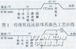 羊毛沸染工藝不僅消耗大量的能源,而且對(duì)羊毛纖維的品質(zhì)造成不良影響,高溫長(zhǎng)時(shí)間沸煮還會(huì)造成羊毛泛黃,影響纖維的可紡性和制成率、手感、鮮艷度及光澤。因此,羊毛低溫染色越來(lái)越受到毛紡行業(yè)的重視。長(zhǎng)期以來(lái),國(guó)內(nèi)外許多染色工作者都在尋求羊毛低溫染色的途徑,歸納起來(lái),主要有甲酸法、尿素法、溶劑法、前處理法及表面活性劑法等。 這些方法在解決羊毛低溫染色問(wèn)題中雖有一定的成效,但存在成本高、工藝操作困難、污染嚴(yán)重等弊端,而未能推廣應(yīng)用于工業(yè)化生產(chǎn),所以人們期待著一種有效低溫染色方法,既不破壞羊毛纖維的特性,又能保證羊毛織物的手感、光澤等優(yōu)良的服用性能,以達(dá)到低溫染色的目的。1實(shí)驗(yàn)1.1材料與試劑 染色試樣:60支內(nèi)蒙古羊毛毛條。 染化料:弱酸性黃、硫脲、雙氧水、氯化稀土、元明粉、滲透劑、醋酸(5%)等。1.2設(shè)備及儀器 電子天平、721型分光光度計(jì)、溫度計(jì)、燒杯、容量瓶、移液管、雙列四孔水瓷柑鍋、單纖維強(qiáng)力測(cè)試儀等。 1.3實(shí)驗(yàn)方法 傳統(tǒng)氧化還原體系染色工藝曲線見(jiàn)圖1,氯化稀土氧化還原體系染色工藝曲線見(jiàn)圖2。