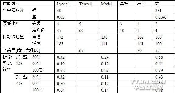 一.未絲光棉與幾種再生纖維素纖維的特性注;*原化纖等級1-5(5級纖毛最多)**移染率測試染料用活性大紅,鹽是元明粉,時間是半小時