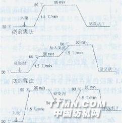 真絲綢優(yōu)雅高貴,與肌膚的親和性好,穿著舒適柔軟,吸濕保暖,可有效地防止皮膚?。镁G色、環(huán)保的天然染料染色,使真絲綢的優(yōu)良品格更趨完美,成為真正的“全綠面料”,在回歸自然、注重環(huán)保、崇尚綠色和追求個性化的今天,對這種“全綠面料”的需求將不斷增加.天然染料的應用已有悠久的歷史,但大多數(shù)天然染料對纖維的親和力低,必須借助媒染劑才能固著在纖維上,完成對織物的染色.在傳統(tǒng)的媒染上藝中,常用的媒染劑大多為重金屬離子,如:銅、鐵、鉻、鋁等.隨著合成染料中部分品種受到禁用和紡織品中重金屬離子含量受到限制,使選用新的媒染劑取代傳統(tǒng)的重金屬離子成為目前發(fā)展紡織品生態(tài)加上的重要任務.因此,在天然染料的染色工藝中,選用無污染、用量低的稀土作為人然染料對真絲織物染色的媒染劑,既可滿足生產(chǎn)綠色環(huán)保紡織品所需要的染色牢度要求,又可避免傳統(tǒng)媒染劑對環(huán)境所帶來的污染.由此可見,采用稀土作為天然染料染色的媒染劑具有較大的實用價值.1實驗1.1材料與儀器織物:真絲綢針織物(40/4475g/m2);藥品:紫膠紅染料、梔子黃染料、紅花黃染料、梔子藍染料、天然黑(植物炭黑)染料(食品級),稀土(Pr/Nd)203、Ce2(C03)3、La203,冰醋酸、氫氧化鈉、鹽酸、硝酸、雙氧水均為分析純,滲透劑JFC(工業(yè)級)等.儀器:RY-25012常溫染樣機,Adventurer電子天平,WFJ2100型分光光度計,SF600型電腦測色配色儀,ROACHES耐洗色牢度試驗儀,AtlasCM-5摩擦牢度試驗儀,JENC06371型pH計,U-3310型紫外可見分光光度儀,YG631型耐汗?jié)n色牢度儀.1.2染色工藝1.2.1工藝配方真絲織物2g,紫膠紅1%(owf)[或梔子藍1%(owf);梔子黃2%(owf);紅花