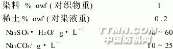 苧麻纖維是天然纖維素纖維.苧麻織物具有強力高、吸濕性好、透氣性好,穿著涼爽等特點,但因纖維結晶度高、剛性大、抱合力小,致使苧麻織物手感粗糙、易起皺、有較強的刺癢感,在染色過程中上染率低、勻染性差.曾有許多學者[1~3]通過研究稀土在羊毛、腈綸、滌綸、錦綸、棉纖維染色中的實驗結果,普遍發(fā)現(xiàn)稀土在染色過程中具有增深、勻染等特點,但在使用活性染料對苧麻纖維染色過程中,發(fā)現(xiàn)在堿性固色時,染液中產生了大量沉淀,染料吸著率反而降低,采用二浴法或檸檬酸作絡合劑絡合稀土離子等可提高上染率[4~6].本實驗研究了稀土及其絡合劑在苧麻纖維染色中的作用后發(fā)現(xiàn):采用稀土-混合絡合劑能提高苧麻纖維上染率和織物艷度,改善織物手感等,并能克服堿固色時產生染花等現(xiàn)象.具有工藝操作簡便、生產廢水量少等優(yōu)點.
